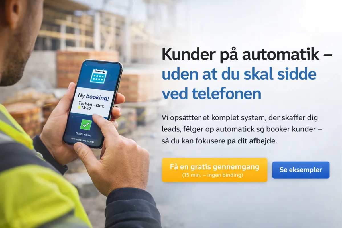 Vi bygger et komplet kundesystem, der skaffer leads, følger op automatisk og booker kunder direkte i din kalender.