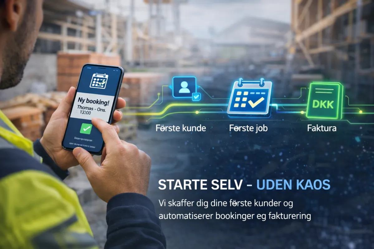 Vi hjælper håndværkere med at komme sikkert i gang som selvstændige med kunder, struktur og system fra dag ét.